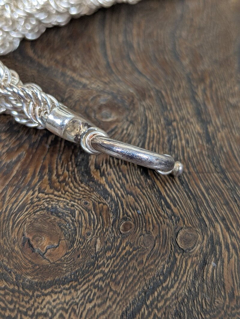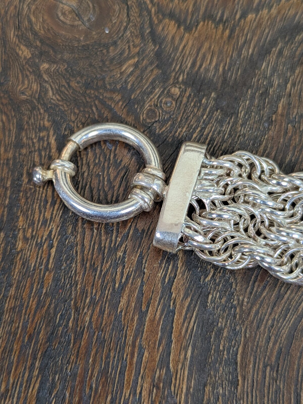 The most perfect classic sterling silver bracelet, woven in a byzantine chainmaille design and finished with large circular clasp. We promise that you'll be reaching for this timeless piece again and again to finish any lewk.